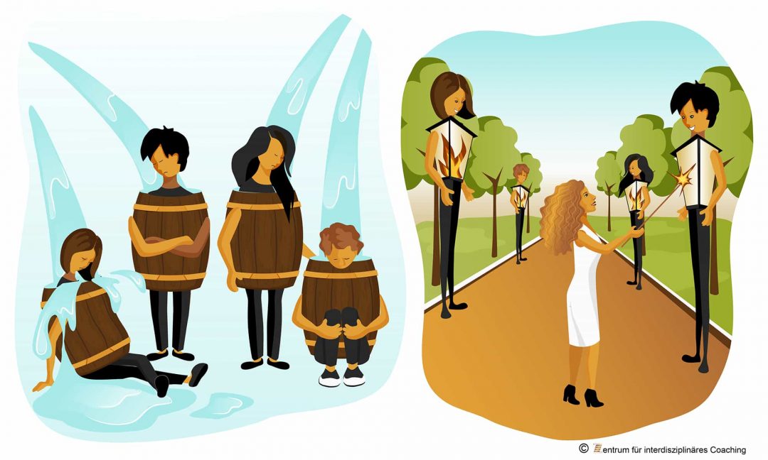 Eine Teilnehmerin beschrieb, wie sie zu Beginn ihrer beruflichen Tätigkeit hoch motiviert startete und andere mitreißen konnte. Über Jahre hinweg nahmen äußere Faktoren jedoch zu, die ihre Motivation dämpften, sodass sie schließlich das Gefühl entwickelte, ihr inneres Feuer sei „gelöscht“ worden. Dieses Beispiel verdeutlichte: